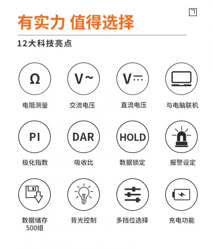 | 額定電壓(V) | 250;500;1000;2500;5000V;10KV |