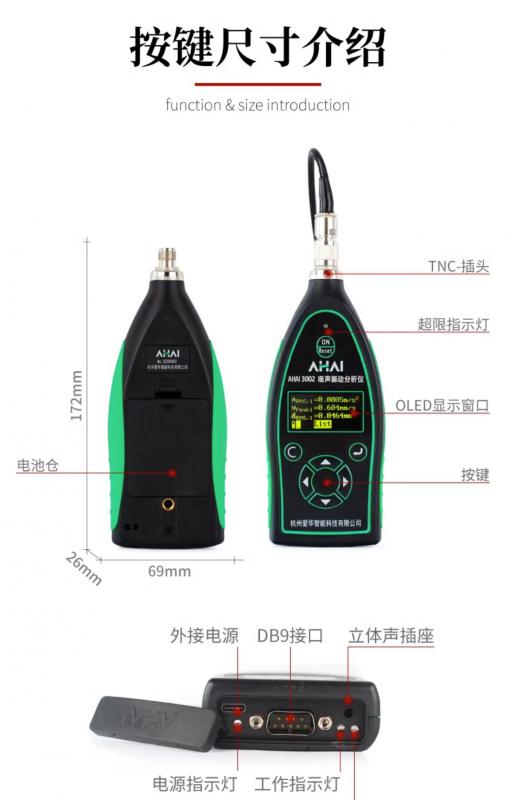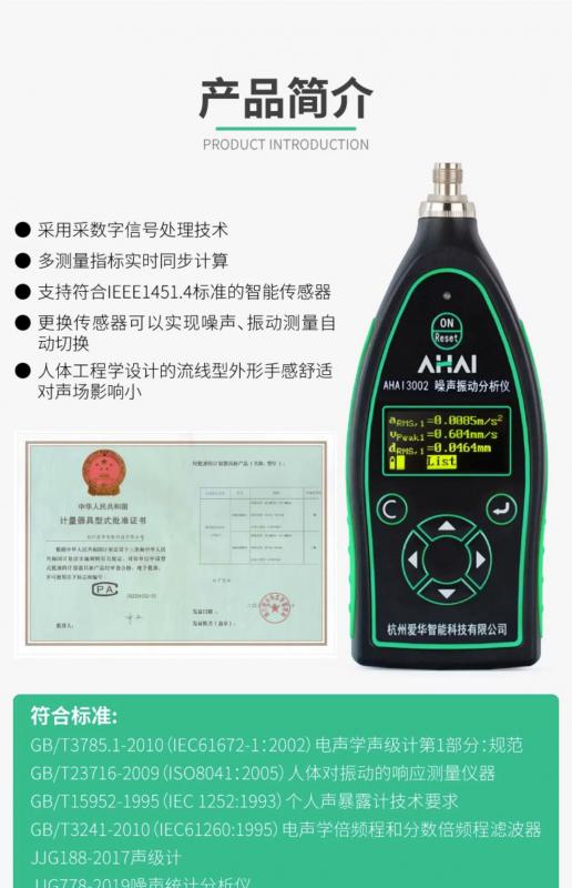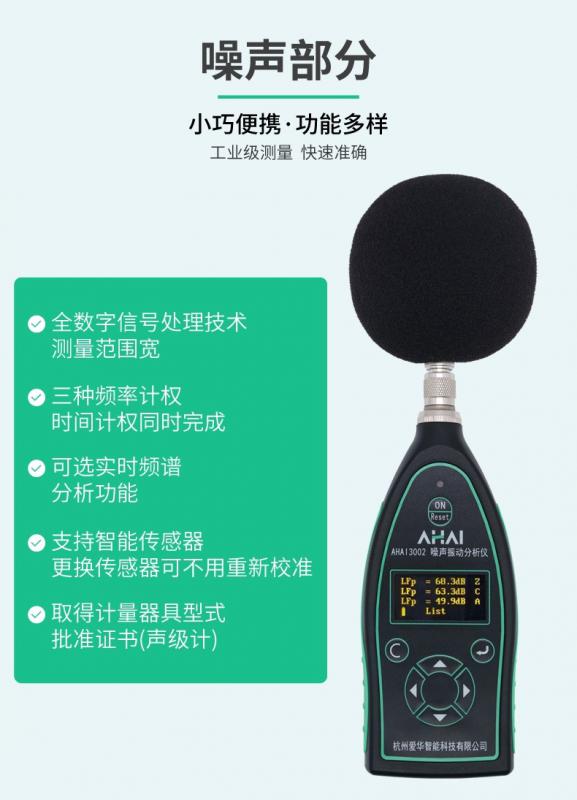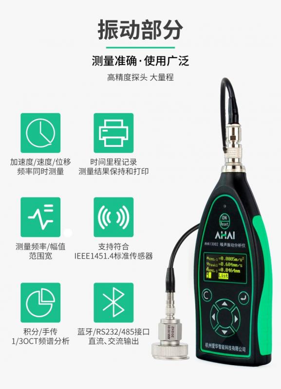HAI3002噪聲振動分析儀配上帶有符合IEEE1451.4標準的振動傳感器后,可以對振動加速度、速度、位移的峰值、峰峰值、有效值,振動頻率同時進行測量??捎糜陔姍C、泵、風機、家用電器、壓縮機、煙機、發(fā)電機、齒輪箱等各類機械設備的出廠檢驗、狀態(tài)監(jiān)測和故障診斷,也可用于工作場所物理因素(手傳振動)的測量。 也可配上傳聲器時是一款手持式噪聲分析儀器。可同時測量噪聲總值、統(tǒng)計、頻譜、聲暴露。測量結(jié)果可以保存在儀器內(nèi)部,也可以實時通過藍牙、RS485/RS232接口上傳到計算機、前端服務器或云服務器上。廣泛應用于設備噪聲、環(huán)境噪聲等領域的測量。
