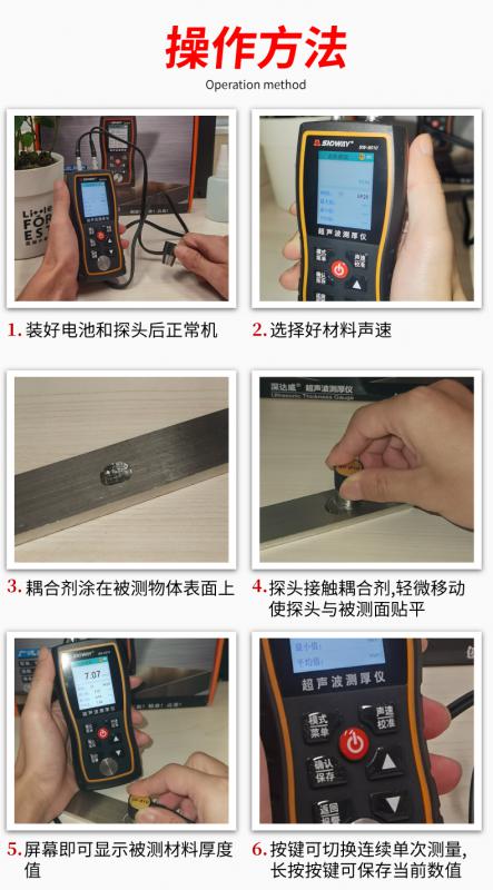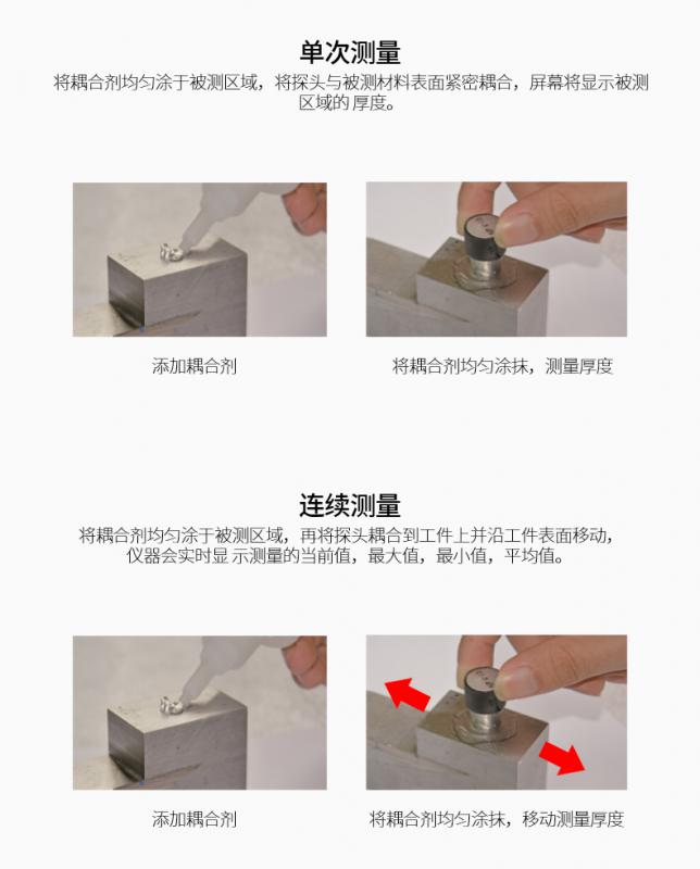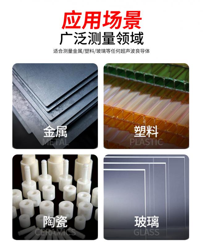 測(cè)量范圍:1.00~300.00(鋼中),聲速范圍:1000~9000m/s,工作溫度:0~40°C,觸摸彩屏
